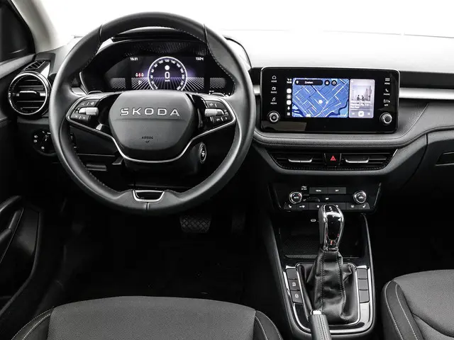 De digitale wereld van mobiliteit verwelkomt u; op het digitale dashboard wordt alles weergegeven om uw rit gemakkelijk en veilig te maken. Kilometerstand? Oliepeil? Accuspanning? Allemaal te zien via de app. Overal. Altijd. Dankzij Connected Services. In deze Fabia vindt u schakelaars op het stuur om het audio-installatiesysteem met dab-ontvangst te bedienen. U verwacht natuurlijk automatische airconditioning in deze auto, en die is er dan ook. De parkeersensoren vertellen precies hoe ver u kunt gaan. Hoe dichter op een obstakel, hoe sneller de piepjes. Wat u ook in deze auto kunt vinden zijn regensensor, cruise control, keyless entry, automatisch dimmende buitenspiegels, lederen stuur en boordcomputer.