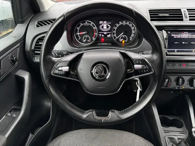 Met een auto als deze ŠKODA Fabia Combi komt u absoluut goed voor de dag. De aandrijving komt voor rekening van een benzinemotor en een handgeschakelde vijfversnellingsbak. Tot de uitrusting behoren ook 16 inch lichtmetalen velgen, LED-dagrijverlichting, in hoogte verstelbare voorstoelen en in delen neerklapbare achterbank.Een goede veiligheidsvoorziening is de spraakbediening en stuurbediening voor belangrijke functies. De auto is natuurlijk voorzien van een navigatiesysteem en het audio-installatiesysteem biedt glasheldere geluidskwaliteit dankzij DAB-ontvangst. Inparkeren en uitparkeren kost geen enkele moeite dankzij de parkeersensoren. Ook op de korte stukken is de cruise control een uitkomst. Kijk maar bij de benzinepomp! In deze auto kiest u zelf uw ideale temperatuur dankzij de airconditioning. De uitrusting van deze auto is met lederen stuur, isofix-aansluiting, centrale deurvergrendeling met afstandsbediening, bagage afdekhoes, boordcomputer en lederen versnellingspook behoorlijk compleet.