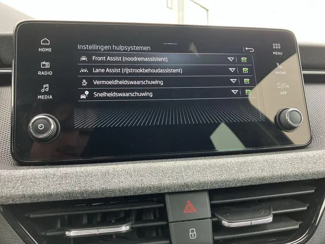 Met het digitale dashboard in deze auto kunt u de interface van uw cockpit personaliseren. Zelfs een kleine aanrijding kan flinke kosten veroorzaken. Gelukkig laat de achteruitrijcamera precies zien wat er zich achter de auto bevindt en geeft een waarschuwingssignaal. De speciale app verbindt met Connected Services, die de status van vitale functies bijhoudt en waarschuwt als u bijvoorbeeld moet tanken, de bandenspanning moet controleren of olie moet bijvullen. Onderweg geniet u van de kwaliteit van het audio-installatiesysteem met dab-ontvangst. De bediening is gemakkelijk via knoppen op het stuur. Met de electronic climate control selecteert u de gewenste temperatuur. Het systeem doet de rest. De Skoda is standaard voorzien van: cruise control, automatisch dimmende binnenspiegel, lederen stuur, centrale deurvergrendeling met afstandsbediening en boordcomputer.