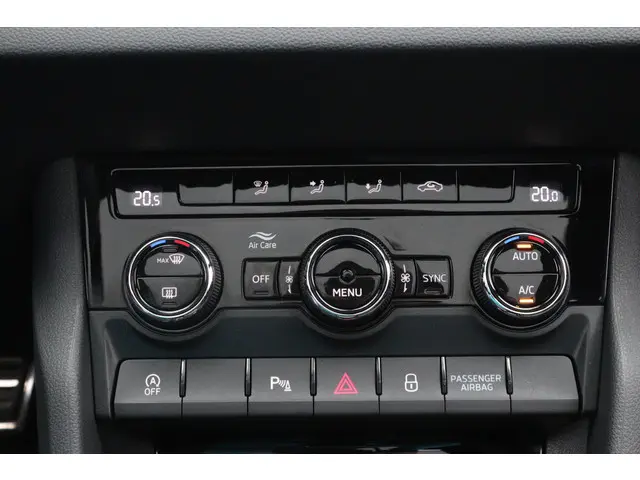 Dealeronderhouden Skoda Karoq met de krachtige en zuinige 1.5 TSI ACT 110kW/150pk motor in combinatie met de DSG automaat. In de zeer luxe en sportieve Sportline uitvoering met het originele elektrisch bedienbare panoramadak en zeer veel andere opties o.a.: origineel navigatiesysteem Columbus, Full LED verlichting met dynamische knipperlichten achter, virtual cockpit, parkeersensoren voor en achter en de originele achteruitrijcamera, App Connect (Apple CarPlay/Android), adaptieve cruise control, Keyless entry / start, elektrisch bedienbare achterklep met sensorsturing, sfeerverlichting interieur, originele 18" lichtmetalen velgen "Procyon Aero", Reservewiel als noodwiel, DAB radio en draadloos laden voor de mobiel telefoon. Deze Karoq wordt geleverd inclusief 12 maanden BOVAG garantie, zonder meerprijs.Meer informatie