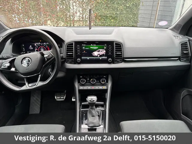 Het is een nette en comfortabele auto, deze Skoda Karoq, hij heeft 120755 kilometer gelopen. De aandrijving van deze Skoda wordt verzorgd door een viercilinder benzinemotor en een automatische transmissie. Op koude en donkere dagen zijn de verwarmbare voorstoelen een uitkomst. In deze sportstoelen voel je je één met je auto. De achterklep opent automatisch met een druk op de knop. Handig als u met volle handen staat. Fijn plusje, zeker in de kille dagen, is het verwarmd stuurwiel. Tot de voorzieningen van deze auto behoren 19 inch lichtmetalen velgen, LED koplampen, donker getint glas achter, in delen neerklapbare achterbank, LED-achterlichten en verstelbare lendensteunen.