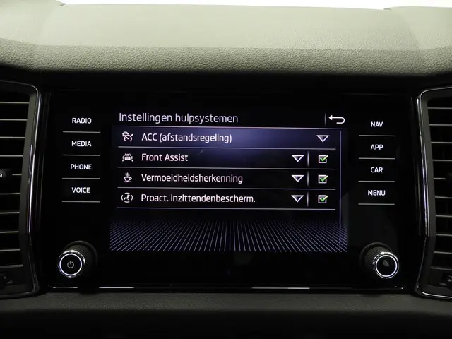 In de Skoda Kodiaq heeft uw veiligheid en die van uw omgeving prioriteit. Het forward collision warning-systeem waarschuwt indien een botsing dreigt met een voorliggend of tegemoetkomend voertuig. Met de vermoeidheidsassistent bent u ook op lange ritten veilig op pad. Het systeem geeft een waarschuwing zodra het tijd is voor een pauze. In deze Skoda vinden we verder een frontale botsbescherming en bandenspanningcontrolesysteem.