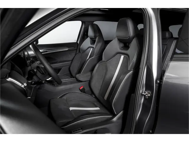 Het interieur is uitgevoerd in microvezel bekleding en voorzien van een elektrisch verstelbare bestuurdersstoel met geheugenfunctie. De afwerking is verzorgd met carbonaccenten en een volledig digitaal instrumentenpaneel, wat bijdraagt aan de moderne uitstraling.