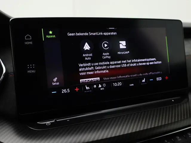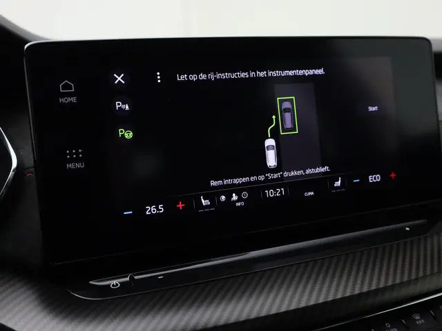 Overzicht, informatie en functionaliteit: dat biedt het digitale dashboard. Zodra u naar de 'R' schakelt, gaat de achteruitrijcamera in werking en heeft u een perfect zicht op alles wat zich achter de auto afspeelt. Adaptive cruise control is een comfortabele en veilige optie. Het systeem reguleert de snelheid en houdt automatisch afstand tot uw voorligger. De meest gebruikte voertuigfuncties laten zich met behulp van uw stem bedienen. Zoals u van zo'n jonge auto mag verwachten, zijn hier ook de geavanceerde remote services aanwezig. Simpelweg met een app op uw smartphone controleert u op afstand de status van de auto en bedient u diverse functies. Deze Skoda is voorzien van full map navigatiesysteem, automatische airconditioning, sportstuur met schakelpaddels, draadloos opladen, DAB ontvangst en regensensor.