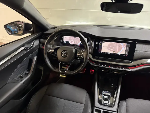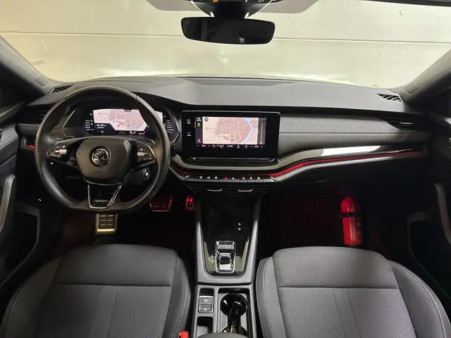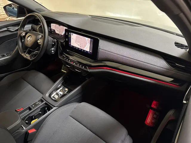 Škoda Octavia Combi 1.5 TSI MHEV 150PK Sportline Business in een sportieve en complete uitvoering. Deze ruime en comfortabele stationwagen is voorzien van een krachtige en efficiënte mild-hybrid benzinemotor, wat zorgt voor soepele prestaties en een laag verbruik.De Sportline-uitvoering geeft de auto een dynamische uitstraling, gecombineerd met een hoogwaardig afgewerkt interieur. Dankzij de achteruitrijcamera parkeer je eenvoudig en veilig, terwijl het geïntegreerde navigatiesysteem je moeiteloos naar elke bestemming brengt. De sfeerverlichting zorgt voor extra comfort en een luxe rijbeleving, zowel overdag als in het donker.