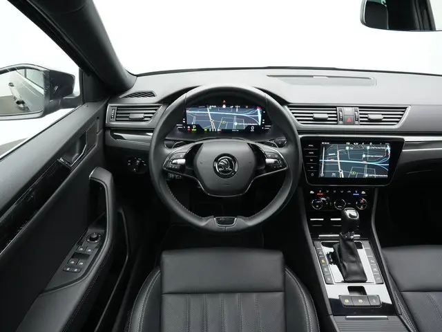 Achter het stuur ervaar je direct het hoge comfortniveau dat je van een Superb mag verwachten. De lederen bekleding, elektrisch verstelbare stoelen met geheugen, stoelverwarming én ventilatie zorgen ervoor dat elke rit ontspannen begint, ongeacht het seizoen. Het verwarmbare stuurwiel en de standkachel verhogen het comfort nog verder, vooral op koude dagen. Dankzij adaptive cruise control, lane assist en dodehoek detectie rijd je met extra rust en overzicht, terwijl Park Assist in combinatie met Trailer Assist het manoeuvreren verrassend eenvoudig maakt – zelfs met aanhanger.