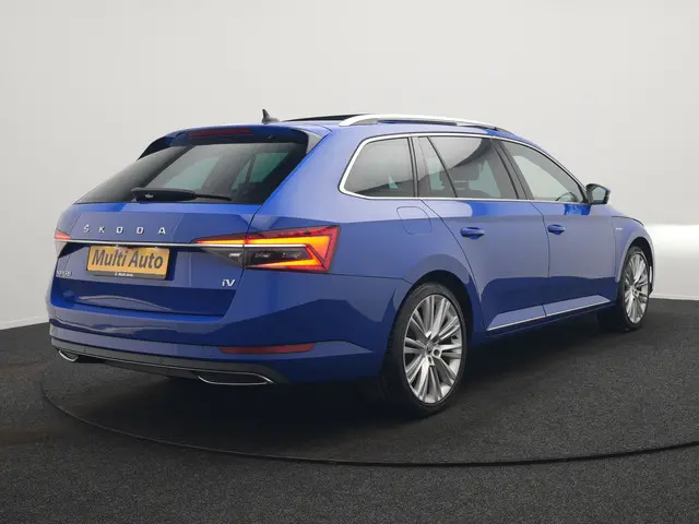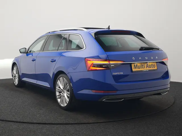 Skoda Superb Combi 1.4 TSI iV Laurin & Klemet PHEV 218pk Dealer O.H. | Trekhaak Af Fabriek | Panodak | Adaptive Cruise | 360 Camera | Lederen Sportstoelen Ventilatie & Memory & Massage | Canton Audio | Crystal LED | Stuur Verwarmd | Sfeerverlichting | Plug In