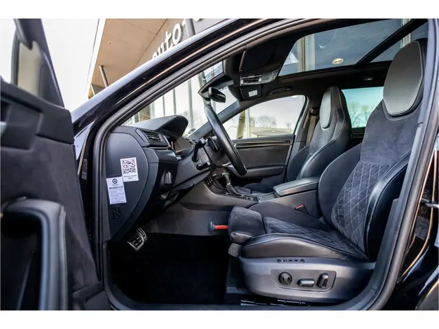 U rijdt gemakkelijk, comfortabel en zonder zorgen met deze ŠKODA Superb Combi. Het is een auto van het bouwjaar 2022, hij heeft 111791 kilometer op de teller staan. Met deze motor haalt u veel kilometers uit een tank brandstof. Basisuitvoering? Niks daarvan! Deze komt met lederen interieur, een elektrisch bediende glazen panorama dak en een elektrisch bedienbare achterklep. Dankzij de elektrische stoelbediening is het gemakkelijk om de optimale zitpositie te vinden. Zelfs op de koudste dagen zorgt het verwarmbare stuurwiel, de voorstoelen en de achterbankverwarming ervoor dat u en uw passagiers het nooit koud hebben in deze luxueuze auto. Met matrix LED-verlichting rijdt u eigenlijk altijd met groot licht, dus maximaal zicht. Toch is verblinden er niet bij, want het systeem regelt de verlichting zo dat tegenliggers er geen last van hebben. Bij de rijke uitrusting horen ook 18 inch lichtmetalen velgen, winterbanden set, sportonderstel, sportinterieur, zwarte hemelbekleding en donker getint glas achter.Via het digitale dashboard bent u permanent op de hoogte van alle informatie die u nodig heeft voor een veilige rit. De vier camera's die samen de 360 graden camera vormen, bieden u de mogelijkheid om obstakels in elke richting te zien. Adaptive cruise control houdt de ingestelde snelheid vast en houdt afstand tot het voertuig voor u. De ingebouwde file assistent is een echte helper als het vaststaat onderweg. Het systeem meet ruimte tot de auto vóór u permanent en activeert zelfs de remmen als uw voorligger stopt. De elektrisch inklapbare trekhaak maakt een einde aan ingewikkelde handelingen. Met dashboard met spraakbediening, connected drive services, full map navigatiesysteem, WIFI-hotspot, achteropkomend verkeer waarschuwing en automatische airconditioning is deze ŠKODA helemaal compleet.