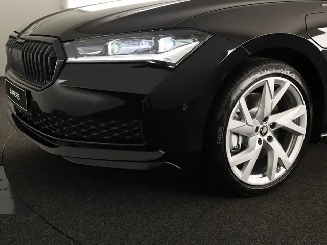 Skoda Superb Combi Sportline Business PHEV 1.5 TSI 204 pk 6 versn. DSG | Panoramadak, elektrisch bedienbaar | Trekhaak, wegklapbaar | Travel Assist Plus Sportline | Dynamic Chassis Control Pakket | CANTON Soundsystem | Lichtmetalen velgen 19 inch Aniara Aero zilver