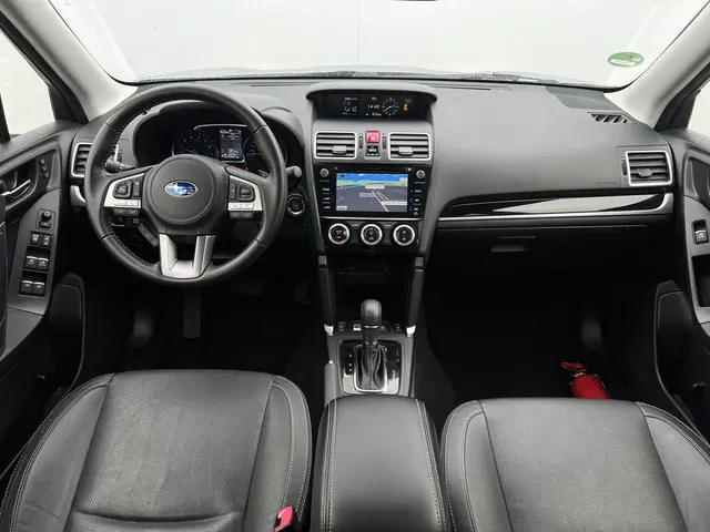 Een hele fijne occasion, deze Subaru Forester. Klasse in uitvoering, perfect in conditie en met een voorbeeldige kilometerstand. Uw aandacht meer dan waard! Een robuuste viercilinder benzinemotor is verantwoordelijk voor de aandrijving van deze SUV. Comfort? Luxe? Stijl? Allemaal meegeleverd in de vorm van het lederen interieur. 's Winters komen de verwarmbare voorstoelen heerlijk van pas. Licht, luxe en gemak komen samen in de vorm van het elektrische bediende glazen panoramadak. Met een druk op de knop gaat de elektrische achterklep open. Natuurlijk behoren 17 inch lichtmetalen velgen, LED koplampen, dakspoiler, donker getint glas achter en in delen neerklapbare achterbank ook tot de uitrusting van deze complete auto.Nooit meer problemen bij achteruitrijden of inparkeren. De achteruitrijcamera houdt alles in de gaten! Met adaptive cruise control houdt de auto zelfstandig afstand tot uw voorligger. Een veiligheidsverhogende optie waarmee u comfortabel onderweg bent. De radio harder of zachter zetten of iemand uit uw contactenlijst bellen. Dankzij de spraakbediening doet u dit allemaal met uw stem. Als u regelmatig met een aanhanger of een fietsendrager op pad bent, is de afneembare trekhaak een praktische extra. Het full map navigatiesysteem zorgt ervoor dat u snel en ontspannen op uw bestemming aankomt. Wat u ook in deze auto kunt vinden zijn electronic climate control, sportstuur met schakelpaddels, DAB+ radio, regensensor, keyless entry en bagage afdekhoes.