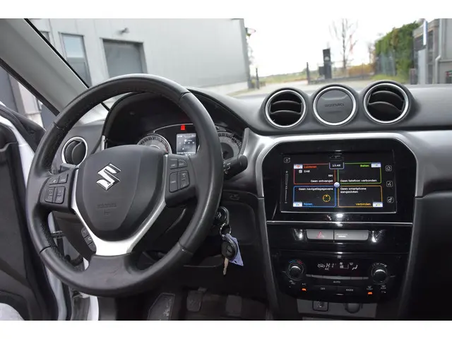 In deze Suzuki Vitara lijken alle parkeervakken meteen een stuk groter. In deze Suzuki vindt u een benzinemotor en een handgeschakelde zesversnellingsbak. Koude start? Niet met de verwarmbare voorstoelen! Tot de voorzieningen van deze auto behoren 17 inch lichtmetalen velgen, extra getint glas, in delen neerklapbare achterbank en snelheidsafhankelijke stuurbekrachtiging.Nooit meer problemen bij achteruitrijden of inparkeren. De achteruitrijcamera houdt alles in de gaten! De kans op een kop-staart botsing wordt sterk gereduceerd door het systeem van achteropkomend verkeer waarschuwing. Electronic climate control verwarmt of koelt het interieur met een druk op de knop. Mag de muziek wat zachter? U past het volume probleemloos aan met de audiobediening op het stuur. Met de DAB-ontvanger heeft u keuze uit talloze digitale radiozenders met de allerhoogste geluidskwaliteit. Met cruise control, lederen stuur, centrale deurvergrendeling met afstandsbediening, bagage afdekhoes en boordcomputer is deze Suzuki helemaal compleet.