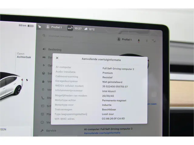 Voertuiggegevens van deze Tesla Model 3