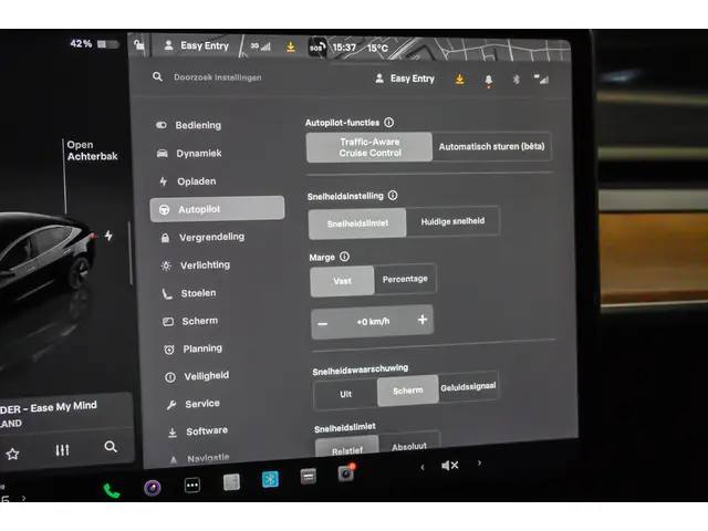 Het rijden met deze Tesla wordt nog meer ontspannen dankzij de innovatieve technieken die onderweg over uw veiligheid waken. Bij de veiligheidssystemen van deze auto hoort ook de verkeersbord-detectie. Die leest tijdens het rijden als het ware met u mee en attendeert u op de significante verkeersborden langs en boven de weg. De lane assist dirigeert u weer naar het midden van uw rijstrook als u buiten de lijnen dreigt te gaan. Bovenop deze veiligheidsfeatures heeft deze Tesla bovendien dodehoekdetectie, autonoom remsysteem en bandenspanning controlesysteem.