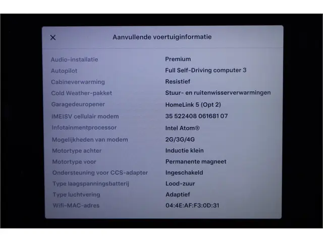 Voertuiggegevens van deze Tesla Model S