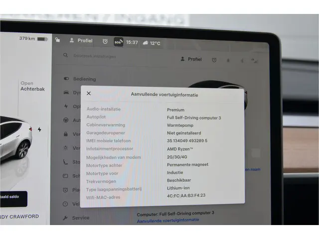 Voertuiggegevens van deze Tesla Model Y