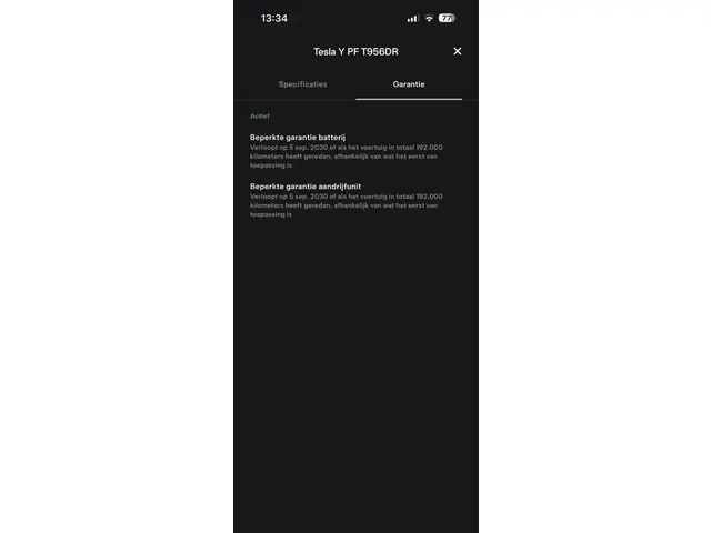 Voertuiggegevens van deze Tesla Model Y