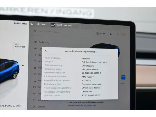 Voertuiggegevens van deze Tesla Model Y