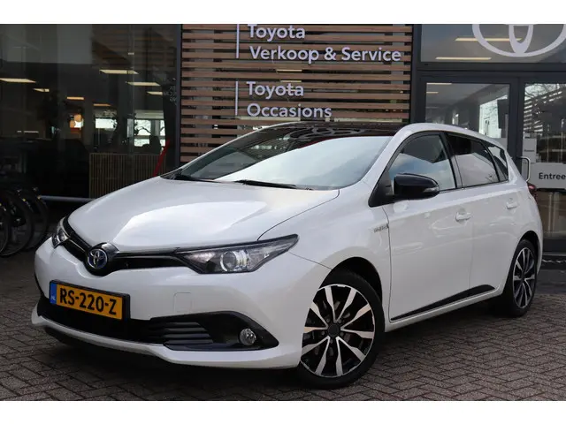 Mooie Toyota Auris 1.8 Hybrid Black Edition In de kleur Pearl White/Zwart dak door deze kleurcombinatie ziet de Auris er erg strak uit!De Auris Black Edition is voorzien van: DAB, Bleutooth, Navigatie, Cruise control, Achteruitrijcamera, 17'' Lichtmetalenvelgen, keyless entry, Trekhaak en nog veel meer! (trekhaak bedoelt voor fietsendrager of een trekgewicht van 385KG)