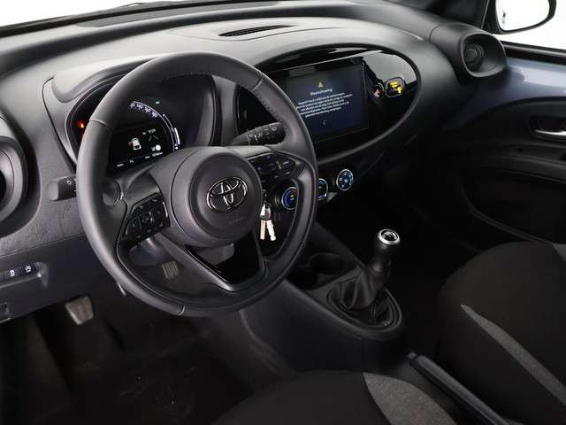Ongelukken of parkeerschade? Dat gebeurt u niet meer, met de achteruitrijcamera. Als u de adaptive cruise control inschakelt, regelt de auto zelf de snelheid en de afstand tot de auto voor u. Ruime zenderkeuze is aanwezig door de DAB-radio en de weergave via het audiosysteem is fantastisch. Deze Toyota Aygo X is voorzien van sensoren aan de achterzijde om een achteropkomend verkeer waarschuwing te geven als de afstand tussen u en een achterligger te klein is. Met de aanwezige airconditioning bepaalt u zelf het binnenklimaat. De uitrusting van deze Toyota is met lederen stuur en centrale deurvergrendeling met afstandsbediening behoorlijk compleet.