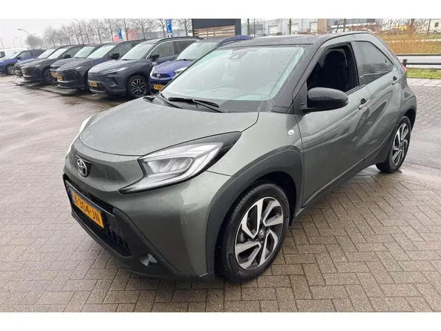 ..Jonge Aygo-X Pulse in de kleur "Cardamon Green" metallic met zwart dak en achterzijde. Deze Aygo-X is voorzien van 17" lichtmetalen velgen, getint glas, Climate Control, Adaptieve Cruise Control, regensensor, lichtsensor en meer! U bent welkom voor een proefrit met deze fraaie Aygo-X!Geniet nu, betaal zoals jij wilt met Toyota Betaalplan.