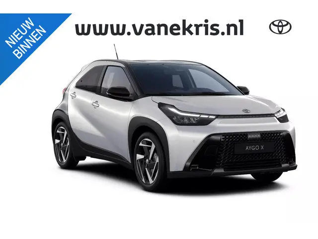 Prachtige Aygo X Hybrid Envy in de exclusieve kleur Jasmin Silver met het prachtige Bi-Tone Night Sky Black dak .Deze leuke en zuinige stadsauto combineert een opvallende uitstraling met het comfort en de betrouwbaarheid waar Toyota om bekend staat.