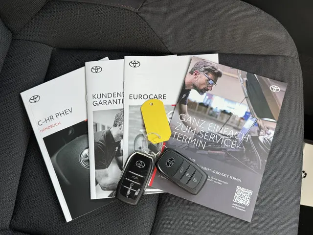 Modern design en bijzondere techniek bepalen de kwaliteiten van de hybride Toyota C-HR. Deze dealeronderhouden Toyota heeft slechts 12 kilometer gelopen, het bouwjaar is 2025. Mooier kan het eigenlijk niet: de combi van elektromotor en verbrandingsmotor. Met deze hybride Toyota C-HR kunt u alle kanten op. Dankzij de stoelverwarming heeft u in deze auto nooit meer last van een koude rug of koude benen. Met een druk op de knop gaat de elektrische achterklep open. De uitmonstering van deze auto wordt gecompleteerd door onder meer 18 inch lichtmetalen velgen, LED koplampen, donker getint glas achter, in delen neerklapbare achterbank, LED-achterlichten en verstelbare lendensteunen.Inparkeren? Met de achteruitrijcamera heeft u er geen omkijken meer naar! Adaptive cruise control is veilig en comfortabel. De snelheidsregelaar houdt automatisch afstand tot het voertuig dat voor u rijdt. De auto's van vandaag rijden niet alleen subliem, maar luisteren ook goed. Via een speciale app kunt u overal diverse functies controleren en de status van de auto inzien. Wegwijs in elke wijk, stad of reisbestemming? Daarvoor zorgt het full map navigatiesysteem! De kans op een kop-staart botsing wordt sterk gereduceerd door het systeem van achteropkomend verkeer waarschuwing. Deze Toyota is voorzien van electronic climate control, draadloos opladen, DAB ontvangst, regensensor, keyless entry en buitentemperatuurmeter.