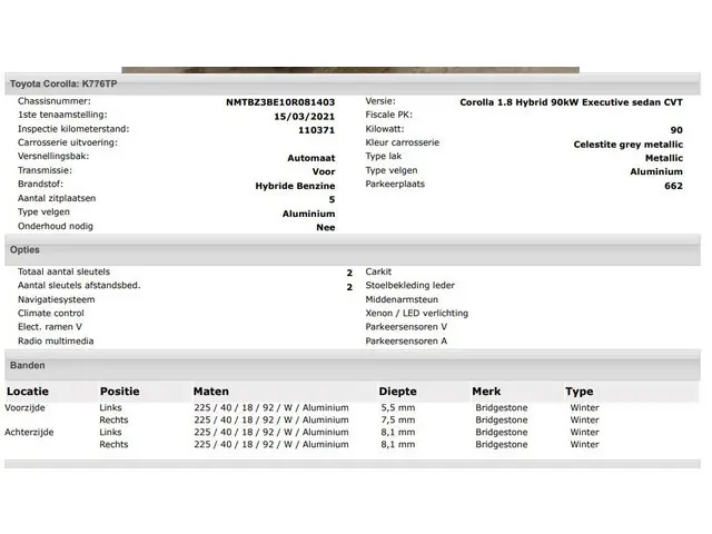 Voertuiggegevens van deze Toyota Corolla