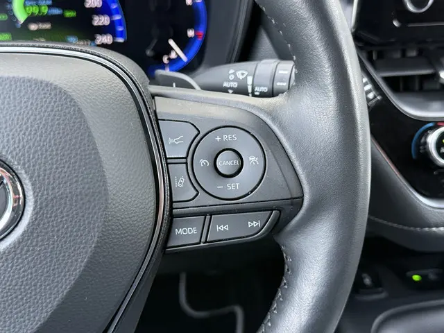 Deze Toyota Corolla Touring Sports maakt een voortreffelijke indruk. Hiermee mag je gezien worden in de stad én op de weg! De krachtige hybridemotor van deze auto is gekoppeld aan een automatische transmissie. De verwarmbare voorstoelen benadrukken nog maar eens dat we hier te maken hebben met een regelrechte verwenauto voor bestuurder en bijrijder. Opwarmen in koude dagen? Pak het verwarmd stuurwiel met beide handen aan! Ook is de auto voorzien van: 17 inch lichtmetalen velgen, LED koplampen, donker getint glas achter, in delen neerklapbare achterbank, LED-achterlichten en verstelbare lendensteunen.Dankzij het digitale dashboard leest u alle benodigde info gemakkelijk en overzichtelijk af. De achteruitrijcamera maakt inparkeren gemakkelijker dan ooit. Met adaptive cruise control houdt deze auto automatisch afstand tot uw voorligger. Als u regelmatig met een aanhanger of een fietsendrager op pad bent, is de afneembare trekhaak een praktische extra. Met uw smartphone maakt u overal contact met de auto. Remote services geven direct inzicht in uiteenlopende functies en zijn op afstand te activeren. Natuurlijk behoren dashboard met spraakbediening, full map navigatiesysteem, achteropkomend verkeer waarschuwing, automatische airconditioning, draadloos opladen en DAB ontvangst ook tot de uitrusting van deze complete auto.