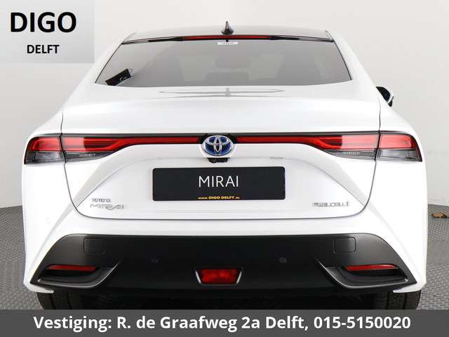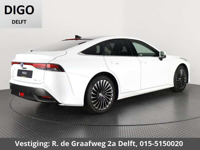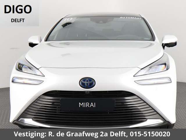 Met deze Toyota Mirai kunt u weer jaren vooruit, de kilometerteller staat op slechts 26.000. Van binnen is deze Toyota Mirai mooi uitgevoerd met een classy lederen interieur. Zelfs op de koudste dagen zorgt het verwarmbare stuurwiel, de voorstoelen en de achterbankverwarming ervoor dat u en uw passagiers het nooit koud hebben in deze luxueuze auto. Het interieur baadt in een zee van licht door het glazen panoramadak. Ook is de auto voorzien van: 20 inch lichtmetalen velgen, Full LED koplampen, donker getint glas achter, LED-achterlichten en verstelbare lendensteunen.Een gevisualiseerd overzicht van alle belangrijke functies wordt geleverd door het digitale dashboard. De 360 graden camera kan het blinde vlek probleem van de achteruitkijkspiegel oplossen, waardoor ongevallen worden voorkomen. Met adaptive cruise control houdt de auto zelfstandig afstand tot uw voorligger. Een veiligheidsverhogende optie waarmee u comfortabel onderweg bent. Ingebouwde spraakbediening maakt het mogelijk om de auto te bedienen zonder dat uw aandacht wordt afgeleid. De sensatie van superieur geluid wordt geleverd door het high performance audiosysteem. De Toyota is standaard voorzien van: full map navigatiesysteem, kruisend verkeer detectie, automatische airconditioning, draadloos opladen, DAB ontvangst en regensensor.