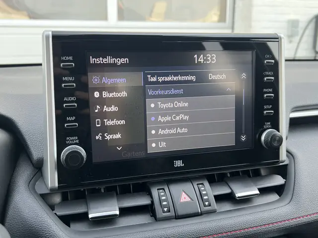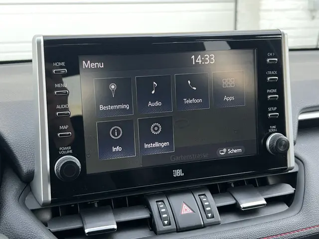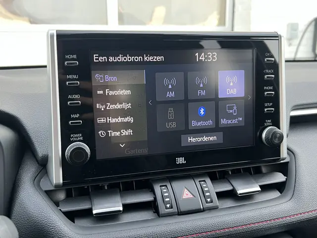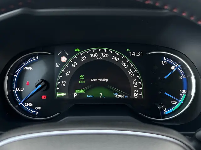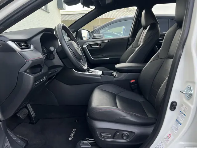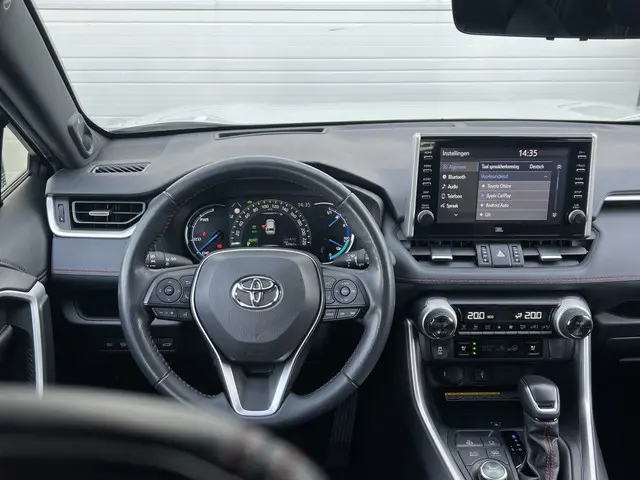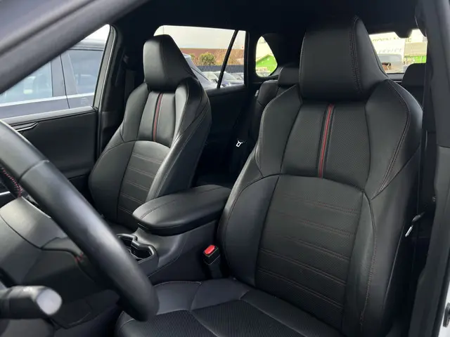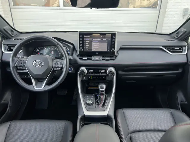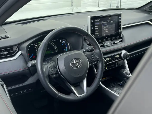 Toonaangevende techniek en een hoge mate van degelijkheid, dat zijn enkele van de eigenschappen van Japanse auto's. Dat ziet u terug in deze Toyota RAV4. Elektrisch rijden of benzine? Deze hybride Toyota RAV4 combineert de pluspunten van allebei naar keuze. En wat heeft deze auto nog meer in petto? Om te beginnen zien we het lederen interieur, dat een sfeer van luxe meebrengt. Maar als u gaat voor gemak, wordt u ook niet teleurgesteld. Kijk eens naar die elektrisch bedienbare achterklep! Een weldaad voor u en uw bijrijder: deze Toyota RAV4 heeft verwarmbare voorstoelen. Laat de koude dagen maar komen. Bij u zitten ze zelfs achterin goed, dankzij de verwarmde achterbank. In deze Toyota profiteert u onder andere ook van: 19 inch lichtmetalen velgen, LED koplampen, geluidsisolerende ramen, trailer assistent, in delen neerklapbare achterbank en LED-achterlichten.Over het digitale dashboard is goed nagedacht. Alle belangrijke functies binnen en buiten in één oogopslag. Of u nu achteruit rijdt, parkeert of een smalle straat inslaat, de 360 graden camera op deze auto, mogelijk gemaakt door vier camera's, biedt een perfect beeld van uw omgeving. Adaptive cruise control houdt de ingestelde snelheid vast en houdt afstand tot het voertuig voor u. De ingebouwde Connected Services vertellen u via de app alles over de status van de auto. Locatie, onderhoudsstatus, brandstofpeil en nog veel meer! Ook het geluid aan boord is top-of-the-line. Het high performance audiosysteem levert superieure prestaties. De uitrusting van deze Toyota is met dashboard met spraakbediening, full map navigatiesysteem, achteropkomend verkeer waarschuwing, electronic climate control, schakelpaddles aan het stuur en draadloos opladen behoorlijk compleet.