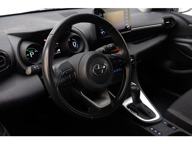 Innovatief design, doordachte techniek en een hoog kwaliteitsniveau zijn typische kenmerken van de Japanse automerken. Dat is te merken aan deze Toyota Yaris, een auto uit 2021 die 100146 kilometer heeft gelopen. Minder vaak tanken? Dat gaat lukken, dankzij de hybride motor die zowel op brandstof als elektriciteit werkt. Een mooie combi, die merkbaar is in de portemonnee. Verder is de Toyota uitgerust met: 16 inch lichtmetalen velgen, LED koplampen, dakspoiler, in hoogte verstelbare passagiersstoel, in delen neerklapbare achterbank en LED-achterlichten.Duik in de digitale wereld van mobiliteit waar alles wat je nodig hebt voor een comfortabele en veilige rit, wordt geprojecteerd op het digitale dashboard. Bij het inparkeren hoef je het laatste stukje niet te gokken: de achteruitrijcamera kijkt voor je uit. Met adaptive cruise control houdt deze auto automatisch afstand tot jouw voorligger. Appen met je auto? Geen probleem. Je kunt van overal contact opnemen, de functies controleren en activeren. Je bedient 'm met remote services. Je kunt het audio-installatiesysteem met dab-ontvangst bedienen met de knoppen op het stuur. Met automatische airconditioning, regensensor, keyless entry, lederen stuur en lederen versnellingspook is deze Toyota helemaal compleet.