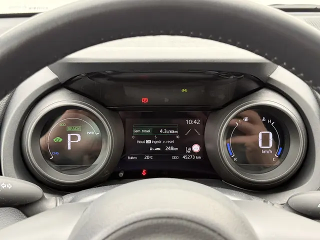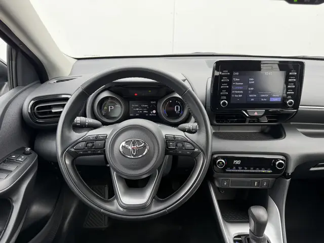 Deze hatchback heeft geen aparte kofferruimte. Via de extra deur aan de achterzijde laadt u gemakkelijk spullen in en als u de achterbank ook nog neerklapt, krijgt u er in één keer honderden liters laadruimte bij. Deze hybride auto heeft een combinatie van een verbrandingsmotor en een elektromotor. Lekker hoor, die verwarmbare voorstoelen. Helemaal op koude dagen. De uitmonstering van deze auto wordt gecompleteerd door onder meer 16 inch lichtmetalen velgen, LED koplampen, dakspoiler, in delen neerklapbare achterbank en LED-achterlichten.Over het digitale dashboard is goed nagedacht. Alle belangrijke functies binnen en buiten in één oogopslag. Afstand schatten bij het achteruitrijden? Niet nodig. U weet het precies, dankzij de achteruitrijcamera. Met adaptive cruise control houdt de auto zelfstandig afstand tot uw voorligger. Een veiligheidsverhogende optie waarmee u comfortabel onderweg bent. Als u regelmatig met een aanhanger of een fietsendrager op pad bent, is de afneembare trekhaak een praktische extra. Uw smartphone wordt een dashboard, met alle functies in beeld. Dankzij Connected Services en de speciale app. Deze Toyota is voorzien van automatische airconditioning, DAB ontvangst, regensensor, keyless entry, lederen stuur en usb-aansluiting.