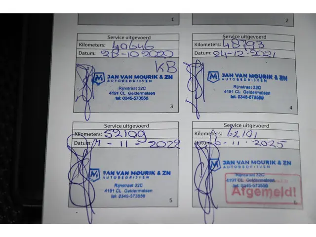 - Onderhoudsboekje (fysiek)