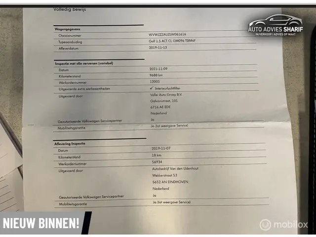 Al onze voertuigen worden bij inname gecontroleerd op technische en optische toestand. Wij zorgen dat dit inzichtelijk is voor verkoop. Hierdoor hebben wij en u zicht op de uitgevoerde werkzaamheden.