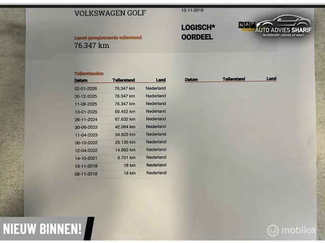 Km stand : 74.347 NAP inclusief historie aanwezig.