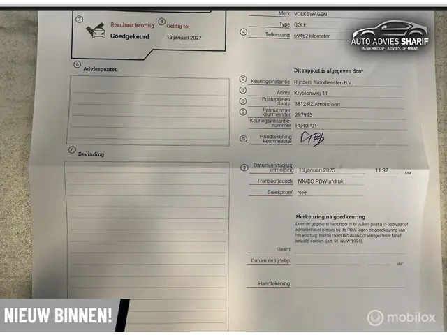 APK: NIEUWE BIJ AFLEVERING
