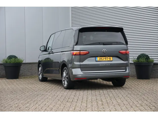 Zeer nette en ruime Volkswagen T7 Multivan 1.4 eHybride L1H1 7 persoons uitvoering in de meest luxe Style uitvoering in de prachtige kleur Indium grey metallic, dit in combinatie met de glans zwarte spiegelkappen en donker grijzen wielen maakt dit een zeer chique verschijning, het voertuig is zeer compleet uitgerust en voorzien van onder andere: elektrische schuifdeuren links en rechts, carplay, stoelverwarming, half leder/alcantara bekleding, achteruitrijcamera, parkeersensoren voor + achter, IQ led verlichting, doorlopende verlichting in grille, multimediasysteem, virtual cockpit, sfeerverlichting, aluminium bies zijkanten, led achterlichten, isofix lane assist, etc.Het voertuig is volledig Volkswagen dealer onderhouden, de gehele onderhoudshistorie en 2 sleutels zijn aanwezig.