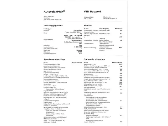 Voertuiggegevens van deze Volkswagen Passat