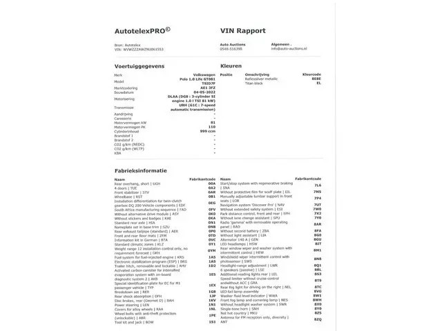 Voertuiggegevens van deze Volkswagen Polo