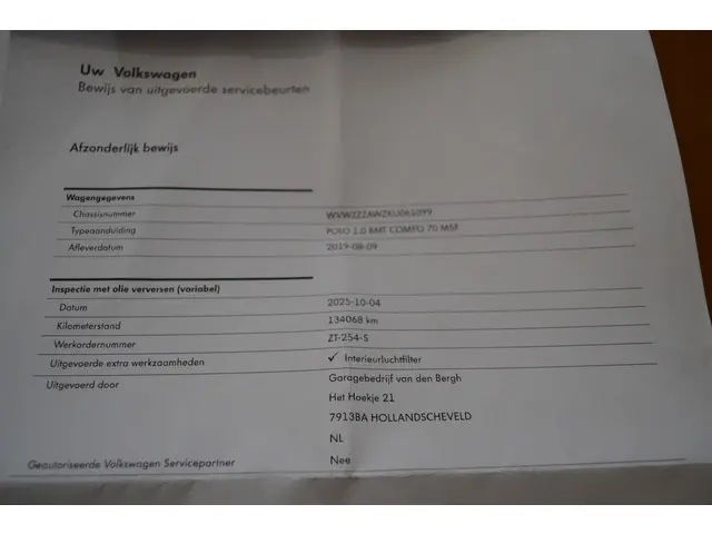 Onderhouden volgens voorschriften: ja