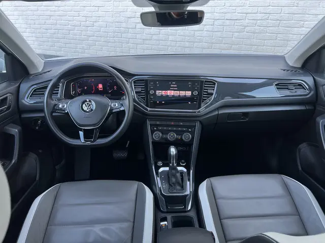Volkswagen, een merk dat geen toelichting nodig heeft. Niet voor niets is de vraag naar gebruikte Volkswagens zo groot, want de kwaliteit staat ook na een aantal jaren nog buiten kijf, zoals aan deze dealeronderhouden T-Roc duidelijk te zien is. De aandrijving komt voor rekening van een benzinemotor en een automatische transmissie. Het kan niet op: een fraai lederen interieur, zeeën van licht met het elektrisch bediende glazen panorama dak en probleemloos in- en uitladen met de elektrisch bedienbare achterklep. Op zelfs de koudste ochtend biedt de stoelverwarming een heerlijk welkom. Bij de uitrusting van deze Volkswagen horen onder meer 18 inch lichtmetalen velgen, LED koplampen, donker getint glas achter, in delen neerklapbare achterbank, LED-achterlichten en verstelbare lendensteunen.Met het digitale dashboard van deze auto is de aanpassing van uw cockpitinterface een fluitje van een cent. Soepel inparkeren in de krapste parkeervakken. De achteruitrijcamera maakt het mogelijk. Adaptive cruise control is een comfortabele en veilige optie. Het systeem reguleert de snelheid en houdt automatisch afstand tot uw voorligger. Het full map navigatiesysteem loodst u snel naar uw reisdoel. Ook is de auto voorzien van automatische airconditioning. Ook regensensor, keyless entry, automatisch dimmende binnenspiegel, lederen stuur, usb-aansluiting en centrale deurvergrendeling met afstandsbediening zijn aan boord.