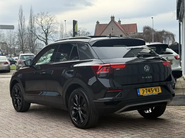 PRIJS IS RIJKLAAR AFGELEVERD.! INCLUSIEF BOVAG GARANTIE.!Een auto als de Volkswagen T-Roc biedt een dynamiek en comfort die typerend zijn voor de producten van de Duitse autofabrikanten. Volkswagen-rijders weten het: een VW is gebouwd voor duurzaamheid en deze T-Roc ziet er dan ook uit als nieuw. De aandrijving komt voor rekening van een benzinemotor en een automatische transmissie. De verwarmbare voorstoelen benadrukken nog maar eens dat we hier te maken hebben met een regelrechte verwenauto voor bestuurder en bijrijder. Zijwaartse g-krachten worden solide opgevangen door de sportstoelen. Houdt u van frisse lucht en van licht dan zit u helemaal goed met het elektrisch bediende panoramadak. Tot de voorzieningen van deze auto behoren 17 inch lichtmetalen velgen, LED koplampen, zwarte hemelbekleding, donker getint glas achter, in delen neerklapbare achterbank en LED-achterlichten.