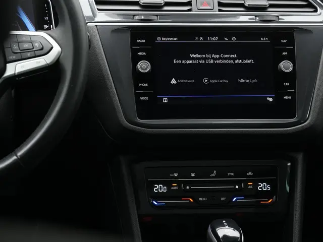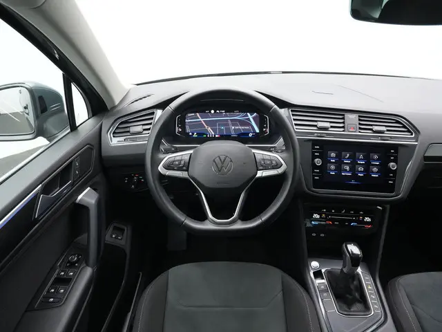 Achter het stuur ervaar je direct het volwassen karakter van deze Tiguan. De top comfortstoelen bieden uitstekende ondersteuning, terwijl de 3-zone Climatronic zorgt voor een aangenaam klimaat voor alle inzittenden. Adaptive Cruise Control in combinatie met Travel Assist maakt lange ritten ontspannen en overzichtelijk, terwijl systemen zoals Side Assist en Park Assist je ondersteunen in druk verkeer en bij lastige parkeersituaties. De achteruitrijcamera zorgt daarbij voor extra gemak en veiligheid. Dankzij de soepele samenwerking tussen de benzinemotor en elektromotor rijdt deze Tiguan stil, efficiënt en comfortabel.