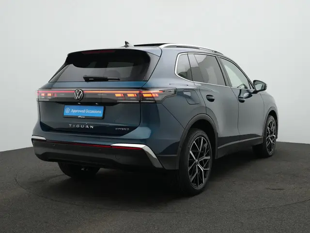 Volkswagen Tiguan 1.5 eHybrid Elegance – Moderne luxe met krachtige uitstralingDeze Volkswagen Tiguan in Elegance-uitvoering laat direct zien hoe verfijnd en compleet een moderne SUV kan zijn. De combinatie van het Panoramadak, de elektrisch wegklapbare Trekhaak met Trailer Assist en de indrukwekkende 20 inch ‘Cannes’ velgen in zwart gepolijst geeft hem een krachtige en stijlvolle uitstraling. De HD Matrix LED (IQ.LIGHT) koplampen en de 3D LED-achterlichten met dynamisch knipperlicht zorgen niet alleen voor optimale zichtbaarheid, maar geven de Tiguan ook een herkenbare en high-tech signatuur, zowel overdag als in het donker.