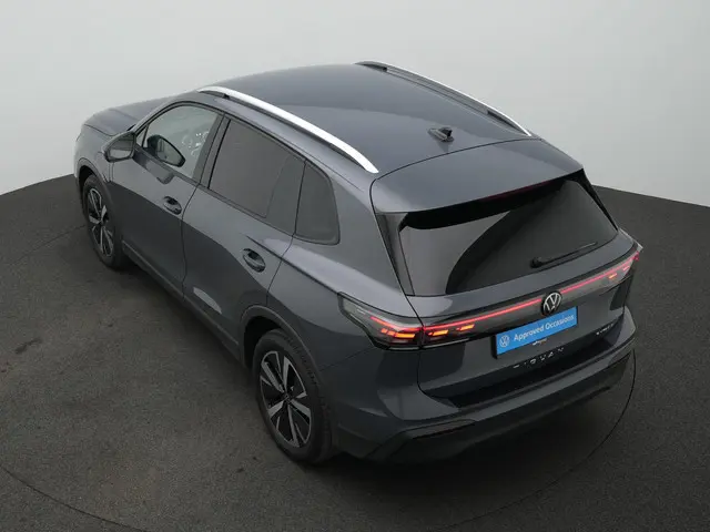 Volkswagen Tiguan Life – Moderne technologie en verfijnd comfortDe nieuwste generatie Volkswagen Tiguan laat zien hoe verfijnd en modern een SUV kan zijn. Deze uitvoering in Dolphin Grey metallic combineert een strakke uitstraling met slimme technologie en een hoog niveau van comfort. De 19 inch ‘Catania’ velgen geven de auto een krachtige en volwassen uitstraling, terwijl de verlichte grille met LED-strip en de LED Plus koplampen zorgen voor een herkenbare, moderne signatuur. Samen met de dakreling in zilver en het getinte glas oogt deze Tiguan stijlvol en eigentijds, precies zoals je van een nieuwe generatie Volkswagen mag verwachten.
