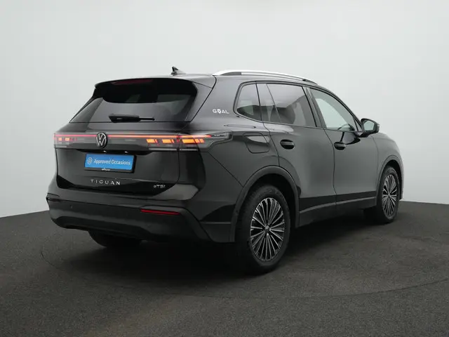 Volkswagen Tiguan Goal Edition – Stijlvolle allrounder met praktische luxeDe Volkswagen Tiguan Goal Edition combineert een moderne uitstraling met verfijnde techniek en een bijzonder complete uitrusting. In Grenadilla Black metallic oogt deze Tiguan strak en tijdloos, terwijl de 18 inch ‘Napoli’ lichtmetalen velgen en de zilveren dakreling het krachtige SUV-karakter subtiel benadrukken. De LED Plus koplampen en de 3D LED achterlichten geven de auto een herkenbare, hoogwaardige lichtsignatuur en zorgen voor uitstekend zicht onder alle omstandigheden. Het geheel voelt modern, doordacht en overtuigend – precies wat je verwacht van de nieuwste generatie Tiguan.