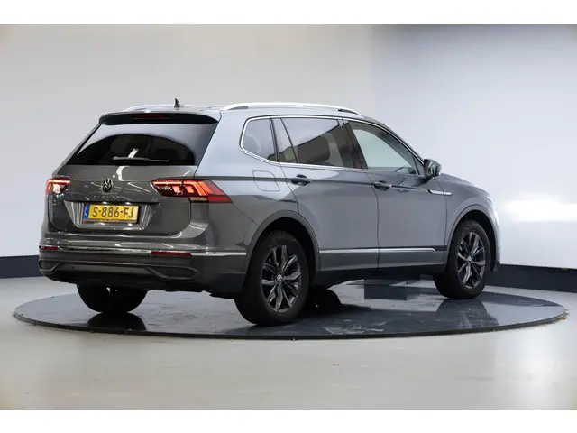 Een Duitse auto. Altijd grondig in techniek, prestaties en klasse. Volkswagen-rijders weten het: een VW is gebouwd voor duurzaamheid en deze Tiguan Allspace ziet er dan ook uit als nieuw. De benzinemotor van deze Volkswagen is niet alleen zuinig, maar ook bijzonder prestatiegericht. Deze Volkswagen Tiguan Allspace legt bestuurder én bijrijder compleet in de watten. De verwarmbare voorstoelen zijn voorzien van massagefunctie. Ontspannen rijden begint met de juiste zit. Daar zorgen de comfortstoelen wel voor. De achterklep opent automatisch met een druk op de knop. Handig als je met volle handen staat. Als je de stuurverwarming inschakelt, geniet jij van weldadige warmte voor jouw handen en vingers. Bij de uitrusting van deze auto horen onder meer 18 inch lichtmetalen velgen, LED koplampen, geluidsisolerende ramen, in delen neerklapbare achterbank, LED-achterlichten en verstelbare lendensteunen.Met het digitale dashboard kan je de cockpit-interface naar jouw voorkeur instellen. Twijfelen hoeveel ruimte je achter de auto hebt? Met de achteruitrijcamera weet je altijd hoeveel centimeter! Met adaptive cruise control houdt de auto zelfstandig afstand tot jouw voorligger. Een veiligheidsverhogende optie waarmee je comfortabel onderweg bent. De jeugd is niet los te maken van hun smartphone, en dat zie je ook aan deze jonge auto. Via een speciale app sta je overal en altijd in contact met je vierwieler. Superhandig! Je bedient het navigatiesysteem en het audio-installatiesysteem met DAB-radio via knoppen op het stuur. Zo kun jij steeds jouw aandacht gericht houden op de weg. Ook automatische airconditioning, draadloos opladen, regensensor, automatisch dimmende binnenspiegel, boordcomputer en lederen versnellingspook horen tot de voorzieningen op deze auto.