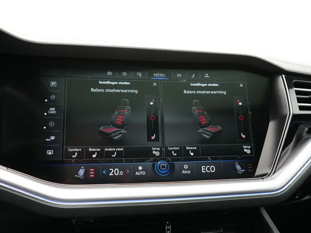 Volkswagen Touareg 3.0 TSi 4MOTION R PHEV 462pk Dealer O.H. | Luchtvering | Trekhaak Af Fabriek | Panodak | Adaptive Cruise | Lederen Sportstoelen Memory & Verwarmd | Camera | 21"L.M | Stuur Verwarmd | Keyless | Apple Carplay | Blis | Plug In Hybrid |Prestaties op hoog niveau, een onderscheidende, stijlvolle carrosserie en een ruim en comfortabel interieur, het zijn de eigenschappen waarmee auto's als deze Volkswagen Touareg hun reputatie hebben gevestigd. Dankzij de R-Line styling heeft deze Volkswagen Touareg de stijl en sportiviteit van een luxe coupé. Niet voor niets is de vraag naar gebruikte Volkswagens zo groot, want de kwaliteit staat ook na een aantal jaren nog buiten kijf, zoals aan deze dealeronderhouden Touareg duidelijk te zien is. De elektromotor zorgt voor snel en traploos optrekken bij ieder stoplicht. Een van de vele voordelen van deze hybride auto. En wat heeft deze auto nog meer in petto? Om te beginnen zien we het lederen interieur, dat een sfeer van luxe meebrengt. Maar als u gaat voor gemak, wordt u ook niet teleurgesteld. Kijk eens naar die elektrisch bedienbare achterklep! De stoelverwarming maakt het interieur snel behaaglijk op koude dagen. Ook is de auto voorzien van: 19 inch lichtmetalen velgen, LED koplampen, warmtewerend glas, in delen neerklapbare achterbank, LED-achterlichten en verstelbare lendensteunen.
