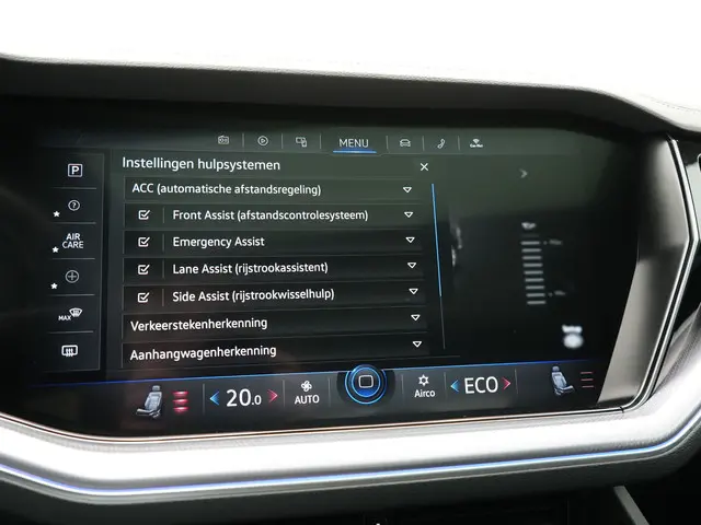 Zoals u mag verwachten van deze Volkswagen Touareg is hij uitgerust met een reeks aan actieve veiligheidssystemen. De camera van de verkeersborddetectie herkent verschillende soorten verkeersborden en toont deze op het dashboard. Het Lane-keeping systeem registreert permanent of u binnen de lijnen van de rijstrook blijft; dwaalt u onbedoeld af, dan waarschuwt het systeem en corrigeert de koers. Op een kop-staartbotsing zit niemand te wachten. Daarom is de forward collision warning onderweg constant alert en berekent via een sensor de veilige afstand tot voorliggers. Met voorzieningen als hill hold functie, vermoeidheidsherkenning, autonoom remsysteem en bandenspanningcontrolesysteem, bent u altijd veilig onderweg.
