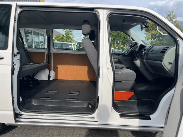 Volkswagen Transporter Kombi 8-persoons 2.0 TDI DSG 140 pk L1H1 met o.a. Cruise control, Trekhaak 2.500 kg, Comfort-pakket (Airco, buitenspiegels elektrisch verstel- en verwarmbaar, centrale vergrendeling met afstandsbediening, elektrische ramen voor, mistlampen voor adaptief), Parkeerhulp vóór en achter, Voorstoelen in hoogte verstelbaar, etc.LET OP: Op dit moment is de auto een 5-peroons uitvoering. Naar wens kunnen wij u deze ombouwen naar een 8- of 9-persoons uitvoering !!!